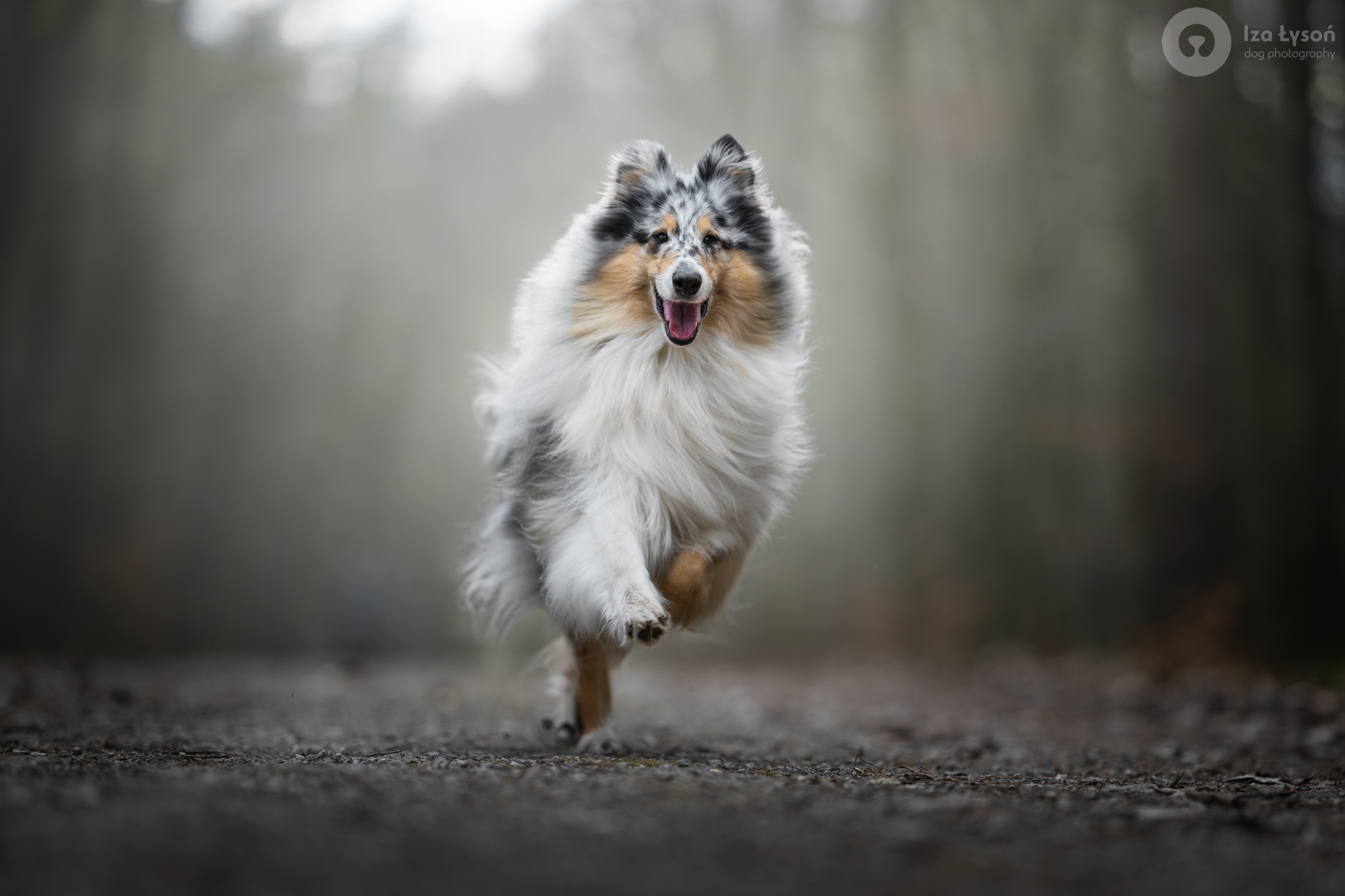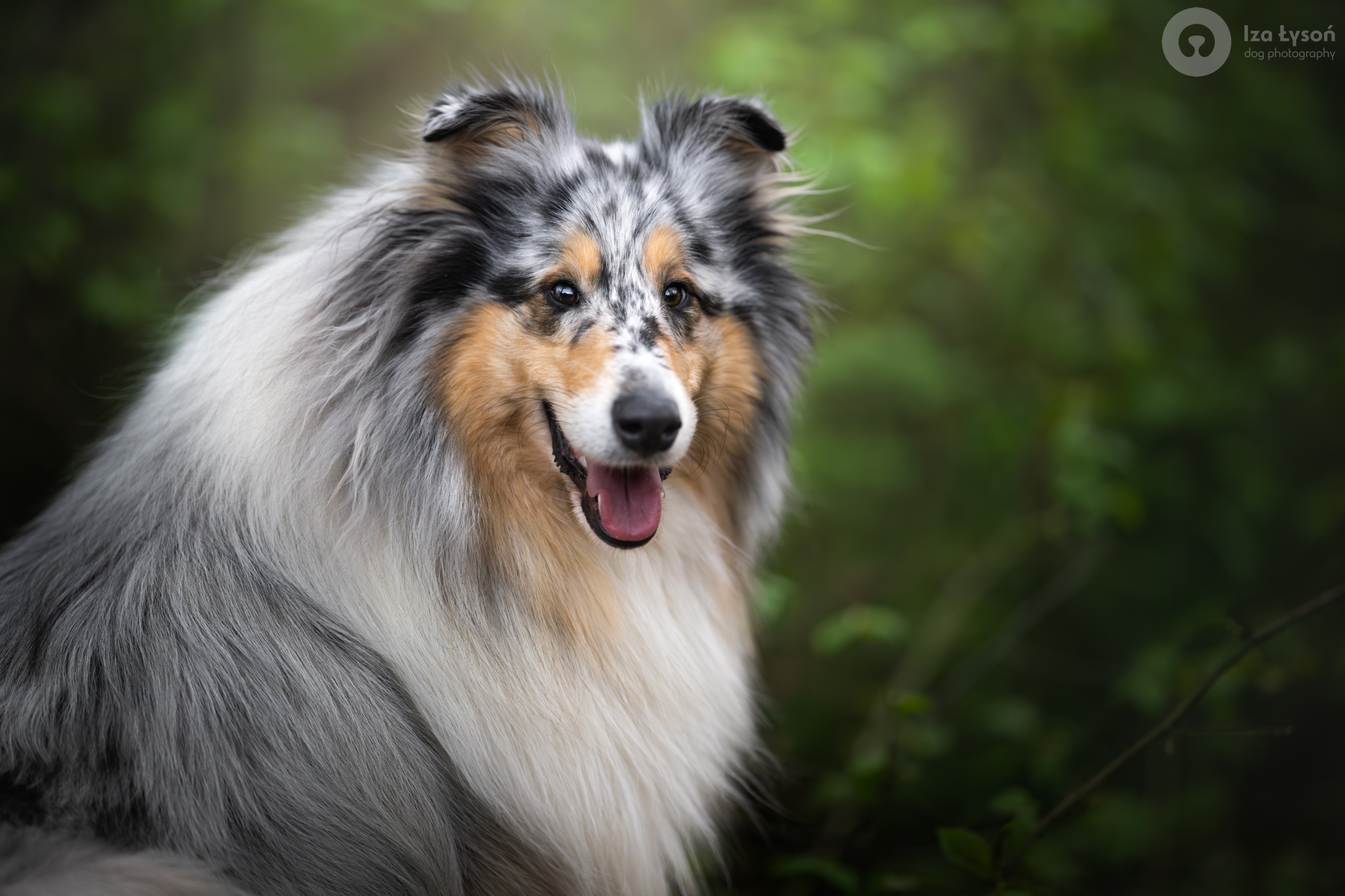 Łagodna dusza z uderzającymi niebieskimi oczami i pięknym wzorem merle.